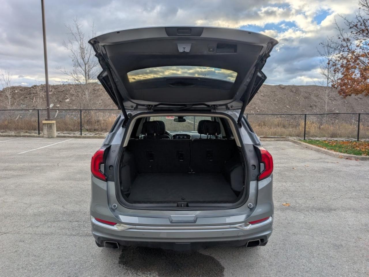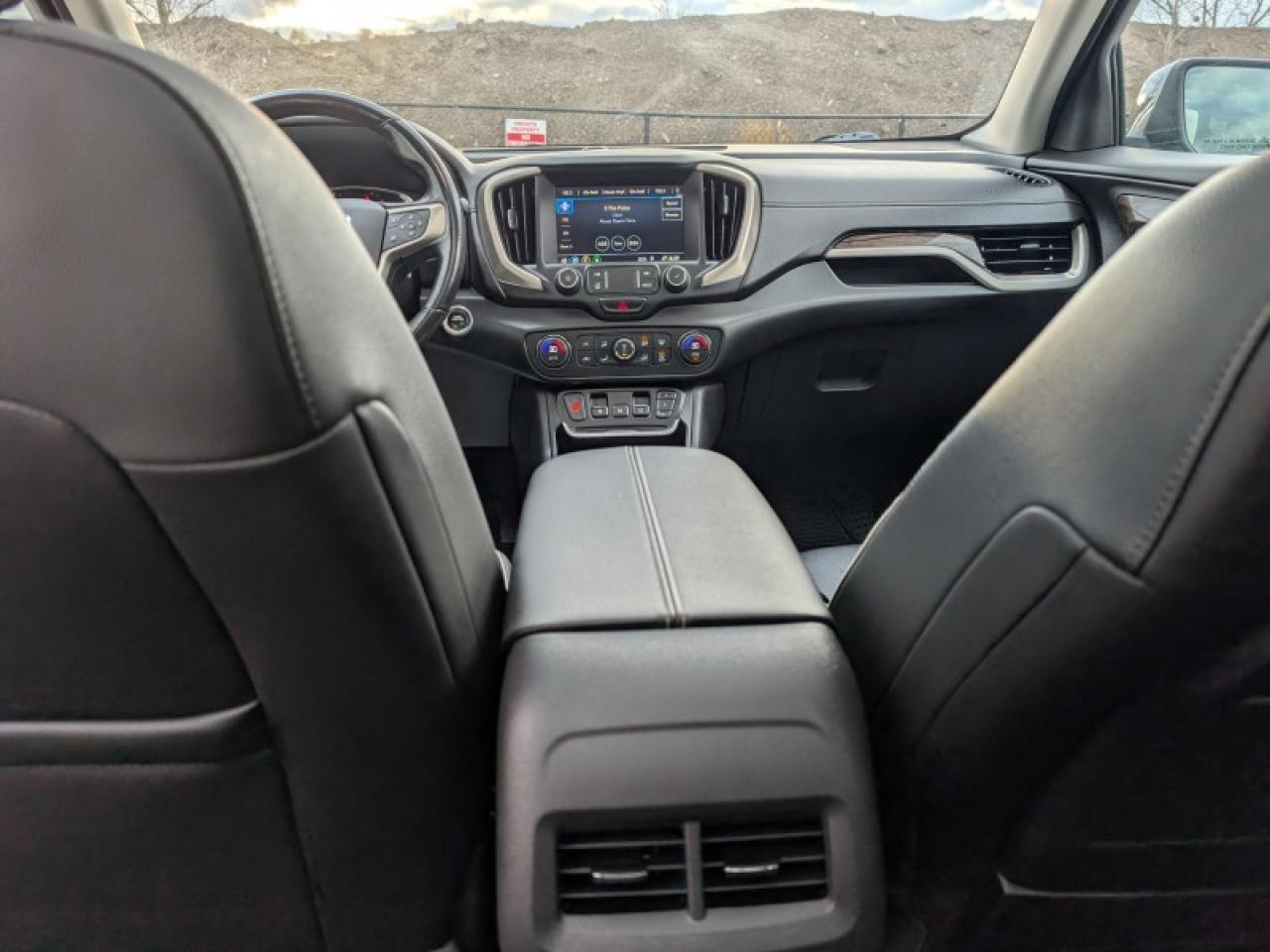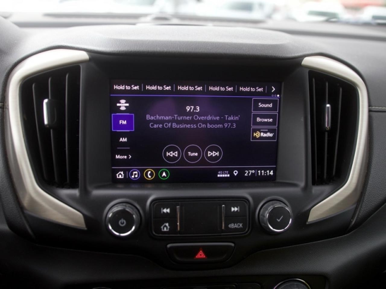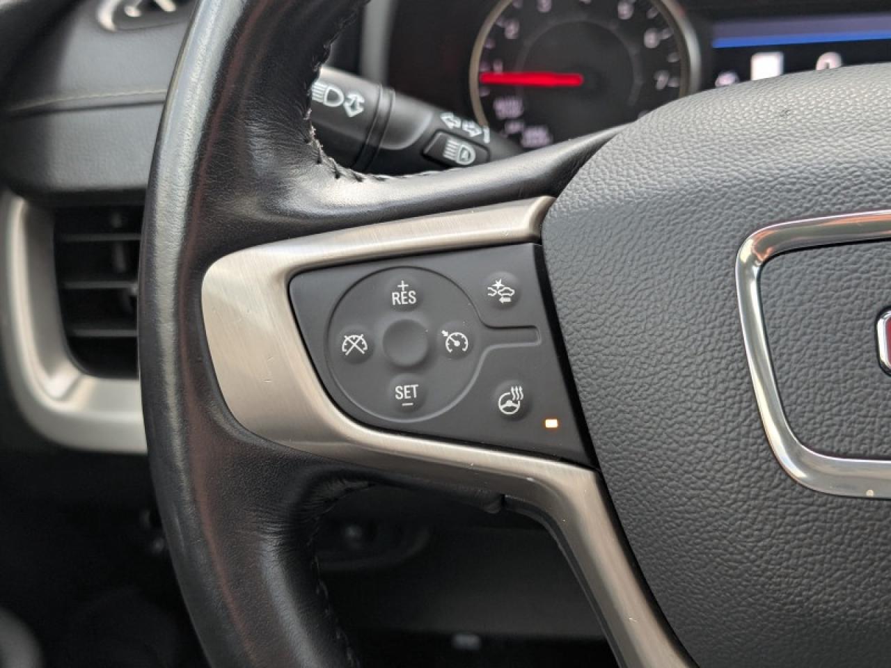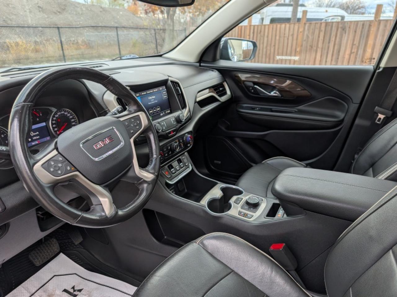 Our Terrain's trim level is Denali. This premium Terrain comes fully loaded with leather heated and cooled seats with memory settings, a larger colour touchscreen infotainment system featuring navigation, Apple CarPlay, Android Auto, SiriusXM, Bose premium audio, wireless charging plus it's also 4G LTE hotspot capable. This Terrain Denali also comes with a power rear liftgate, rear park assist, lane change alert with blind spot detection, exclusive aluminum wheels and exterior accents, a leather-wrapped heated steering wheel, lane keep assist with lane departure warning, forward collision alert, Teen Driver technology, a remote engine starter, an HD rear vision camera, LED signature lighting, power driver and passenger seats and a 60/40 split-folding rear seat to make hauling larger items a breeze.