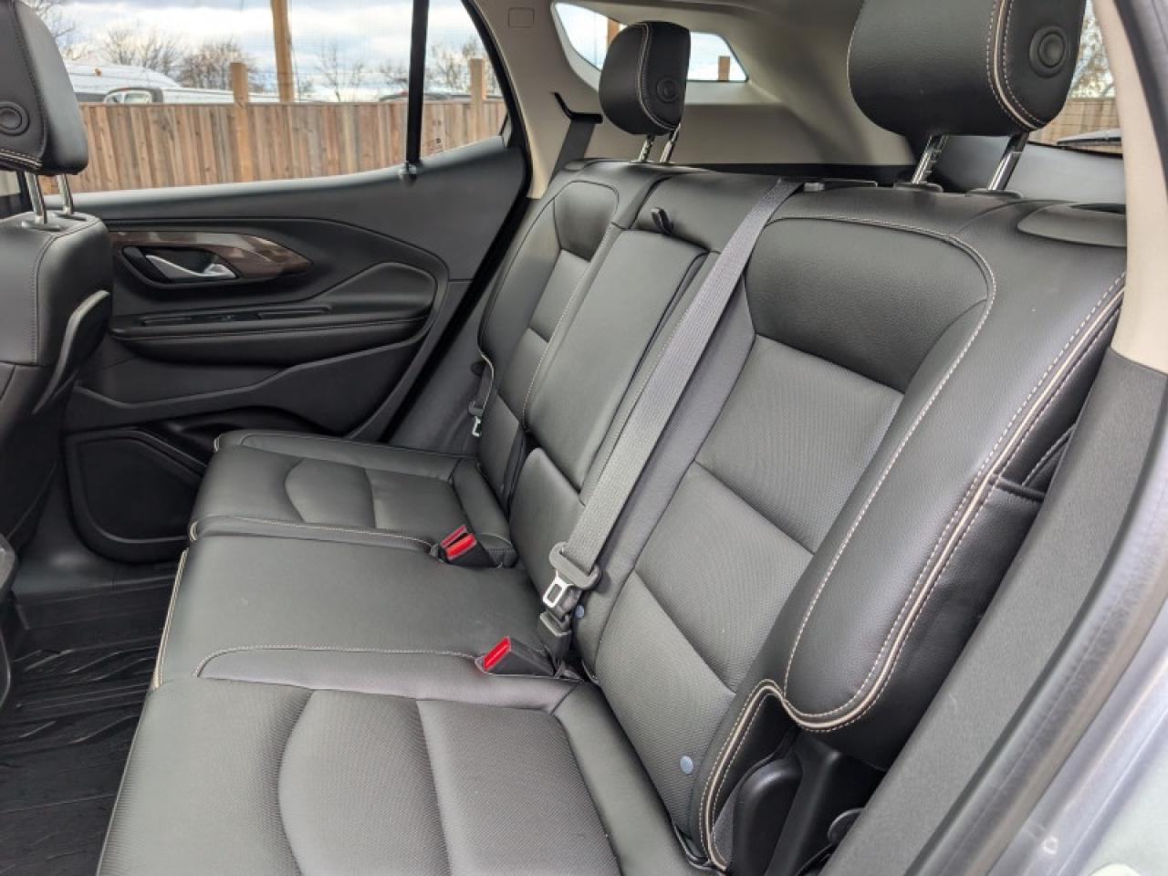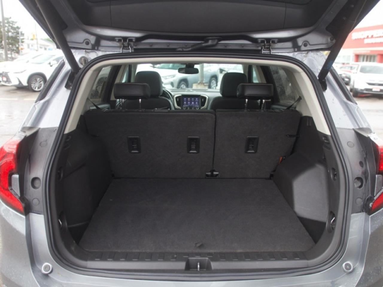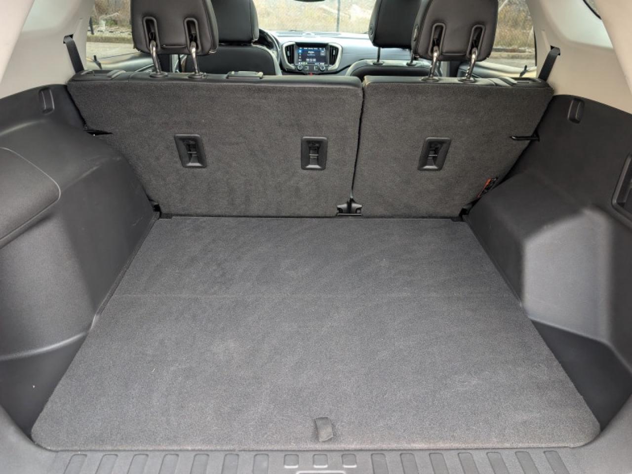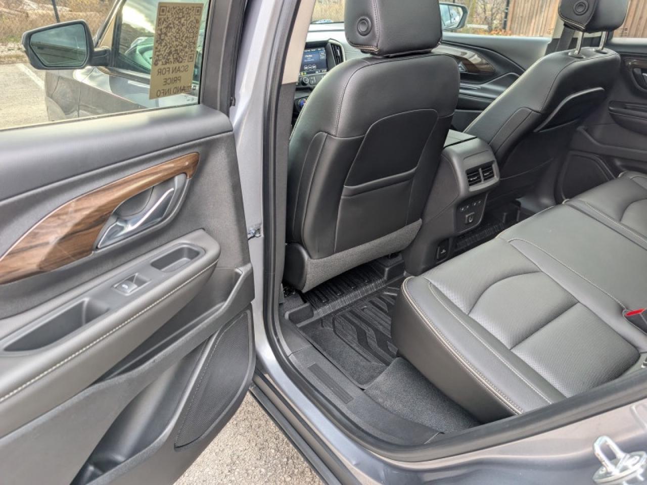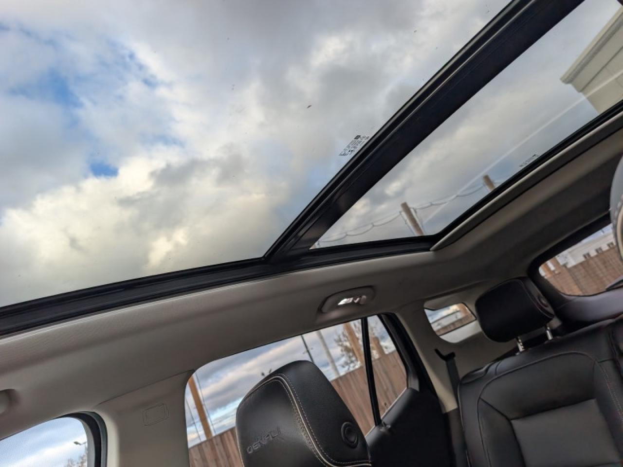 Our Terrain's trim level is Denali. This premium Terrain comes fully loaded with leather heated and cooled seats with memory settings, a larger colour touchscreen infotainment system featuring navigation, Apple CarPlay, Android Auto, SiriusXM, Bose premium audio, wireless charging plus it's also 4G LTE hotspot capable. This Terrain Denali also comes with a power rear liftgate, rear park assist, lane change alert with blind spot detection, exclusive aluminum wheels and exterior accents, a leather-wrapped heated steering wheel, lane keep assist with lane departure warning, forward collision alert, Teen Driver technology, a remote engine starter, an HD rear vision camera, LED signature lighting, power driver and passenger seats and a 60/40 split-folding rear seat to make hauling larger items a breeze.