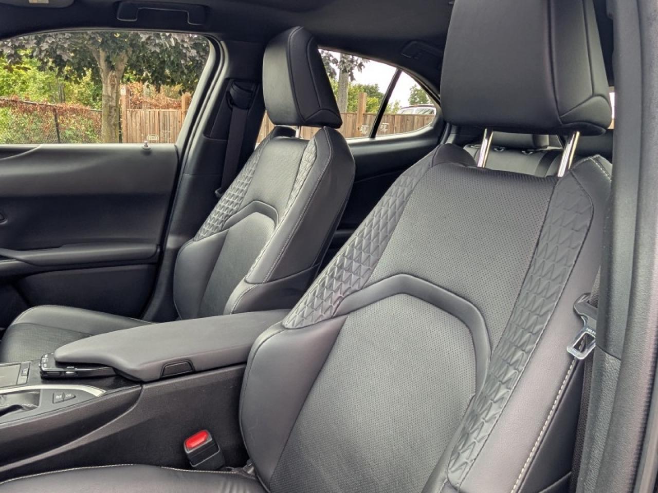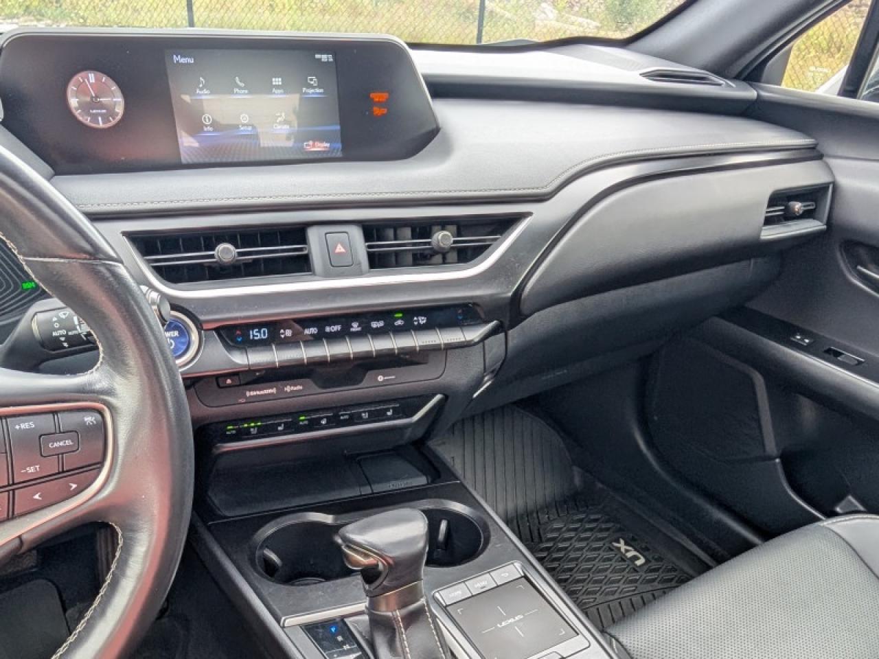 Our UX's trim level is 250h. This amazing UX comes loaded with Lexus display audio with a 7 inch screen, Scout GPS navigation, Apple CarPlay, Android Auto, Enform app suite with traffic and weather, Bluetooth, and USB inputs to keep you connected and entertained while a moonroof, heated and cooled power front seats, NuLuxe synthetic leather seats, blind spot monitoring, lane keep assist, pre collision system with pedestrian and bicycle detection, leather wrapped steering wheel with cruise and audio controls, dual zone automatic climate control, Enform Safety Connect with post collision SOS and roadside assistance, multi information display, rear view camera, auto dimming rear view mirror, smart key system with push button start, rain sensing wipers, headlamp washers, and LED lighting keep in luxury and safety that go way beyond your expectation of a subcompact SUV.