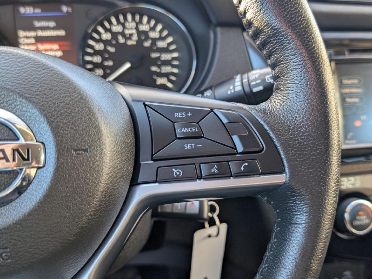 Our Rogue's trim level is S Special Edition. This Rogue Special Edition builds off the S features like heated power side mirrors with turn signals, sport mode with manual shifter, Advanced Drive-Assist, mood lighting, heated front seats, a 7 inch display with NissanConnect, Apple CarPlay, Android Auto, SiriusXM, Bluetooth, MP3/WMA/CD playback, aux and USB inputs for interior comfort. This Rogue also has some great safety features like intelligent trace control that applies braking to turning side for added control, active ride control adjusts suspension damping for different applications, and intelligent engine braking that uses the motor to reduce brake wear, forward collision warning with automatic emergency braking, and blind spot warning with rear cross traffic alert. This Special Edition package adds aluminum wheels, roof rails, Special Edition badge, chrome door handles, dual zone automatic climate control, and a heated leather steering wheel.