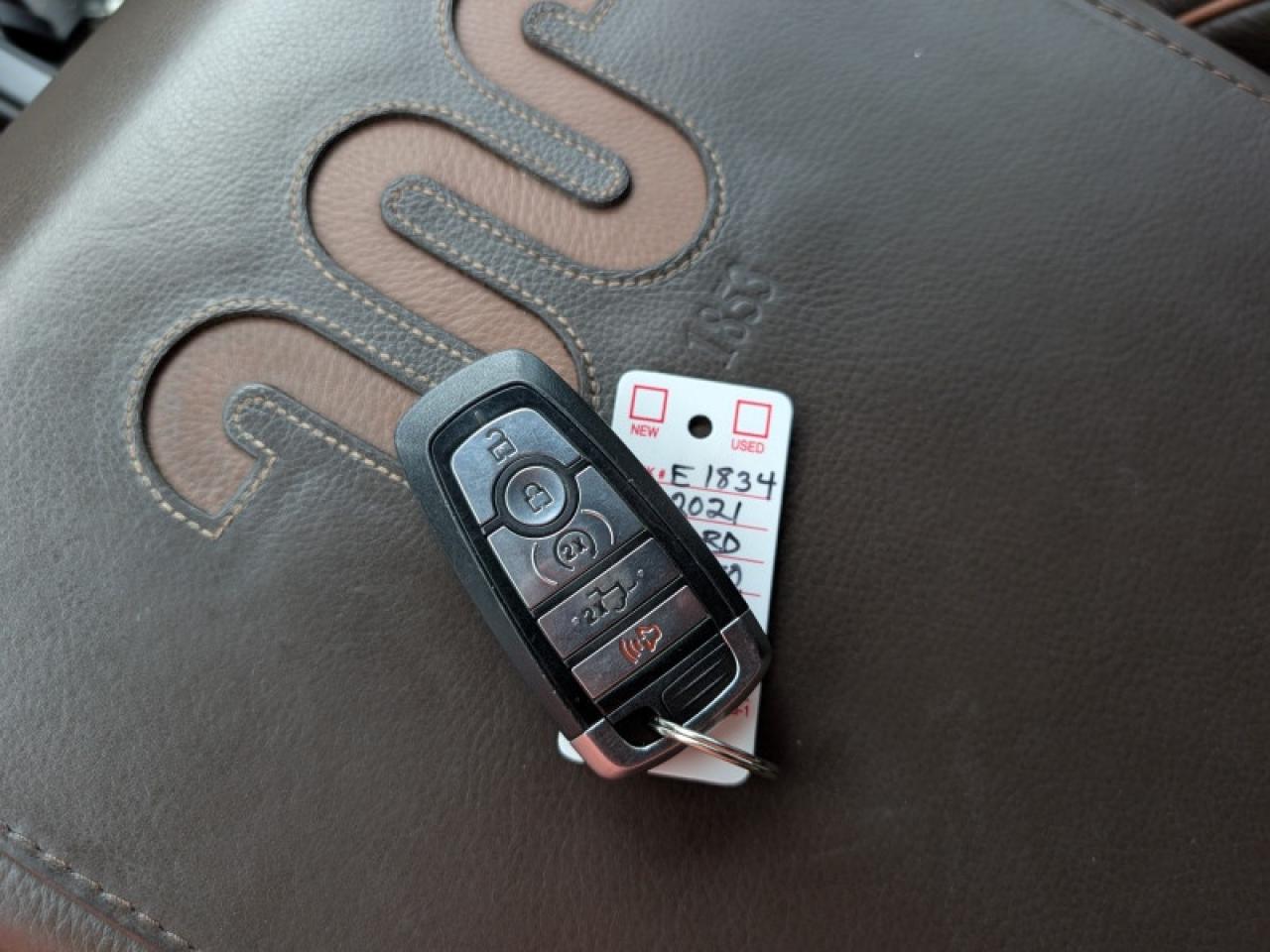 Our F-150's trim level is King Ranch. Upgrading to this luxurious Ford F-150 King Ranch is a great choice as it comes fully loaded with premium features such as Mesa leather heated and cooled seats, exclusive body coloured exterior accents, a proximity key with push button start, pro trailer backup assist and Ford Co-Pilot360 that features evasion assist, lane keep assist, pre-collision assist, automatic emergency braking, rear parking sensors and more. Additional features include unique aluminum wheels, SYNC 4 with enhanced voice recognition featuring connected navigation, Apple CarPlay and Android Auto, FordPass Connect 4G LTE, power adjustable pedals and side steps, a premium Bang and Oulfsen sound system with SiriusXM radio, cargo box lights, a smart device remote engine start, a heated leather steering wheel and a useful rear view camera to help when backing out of tight spaces.