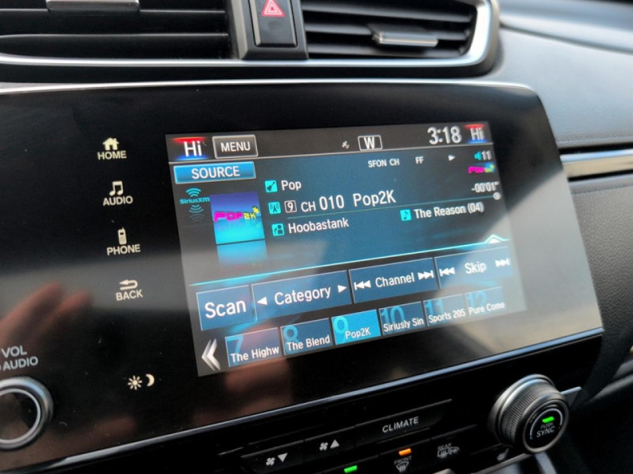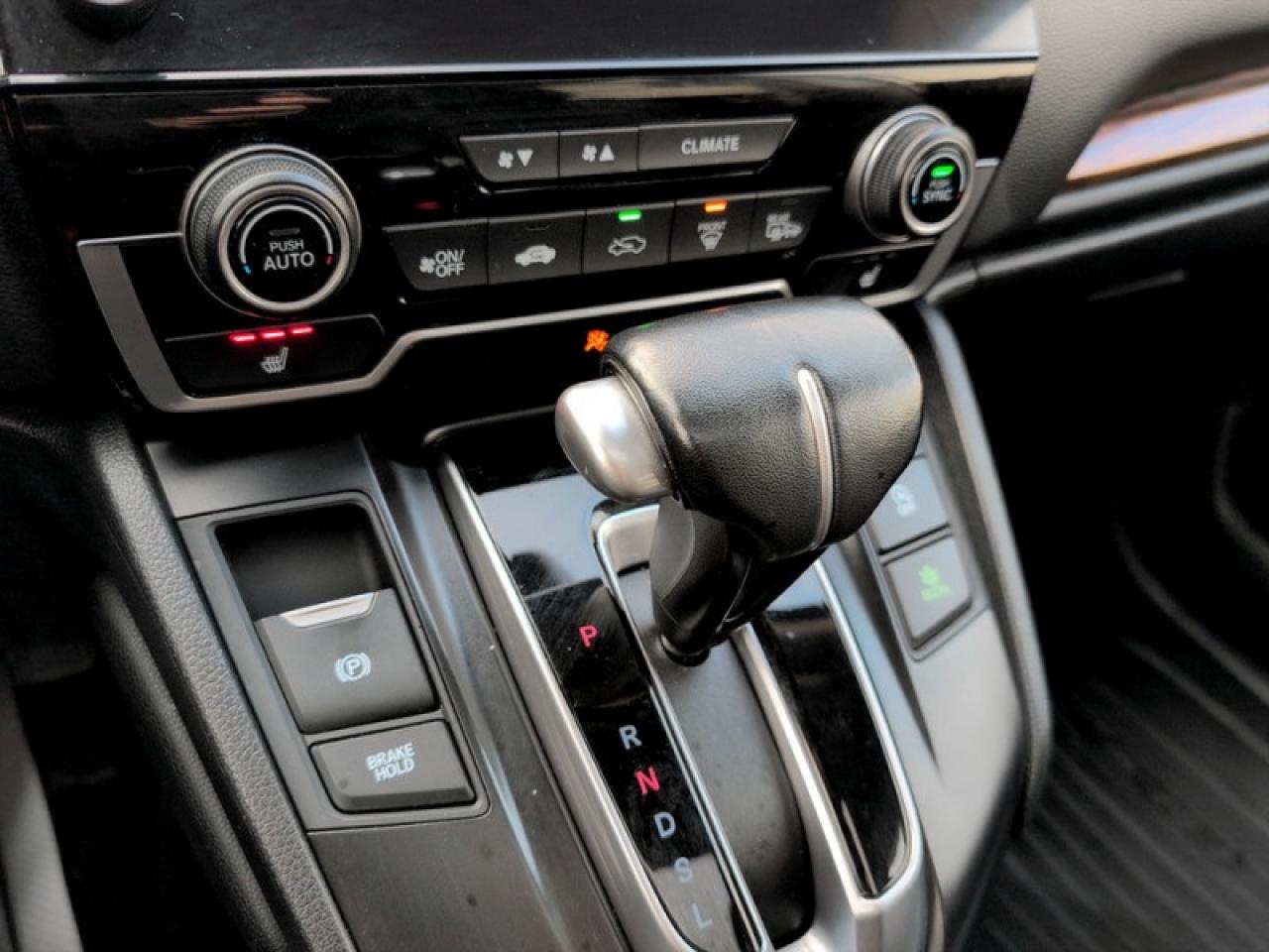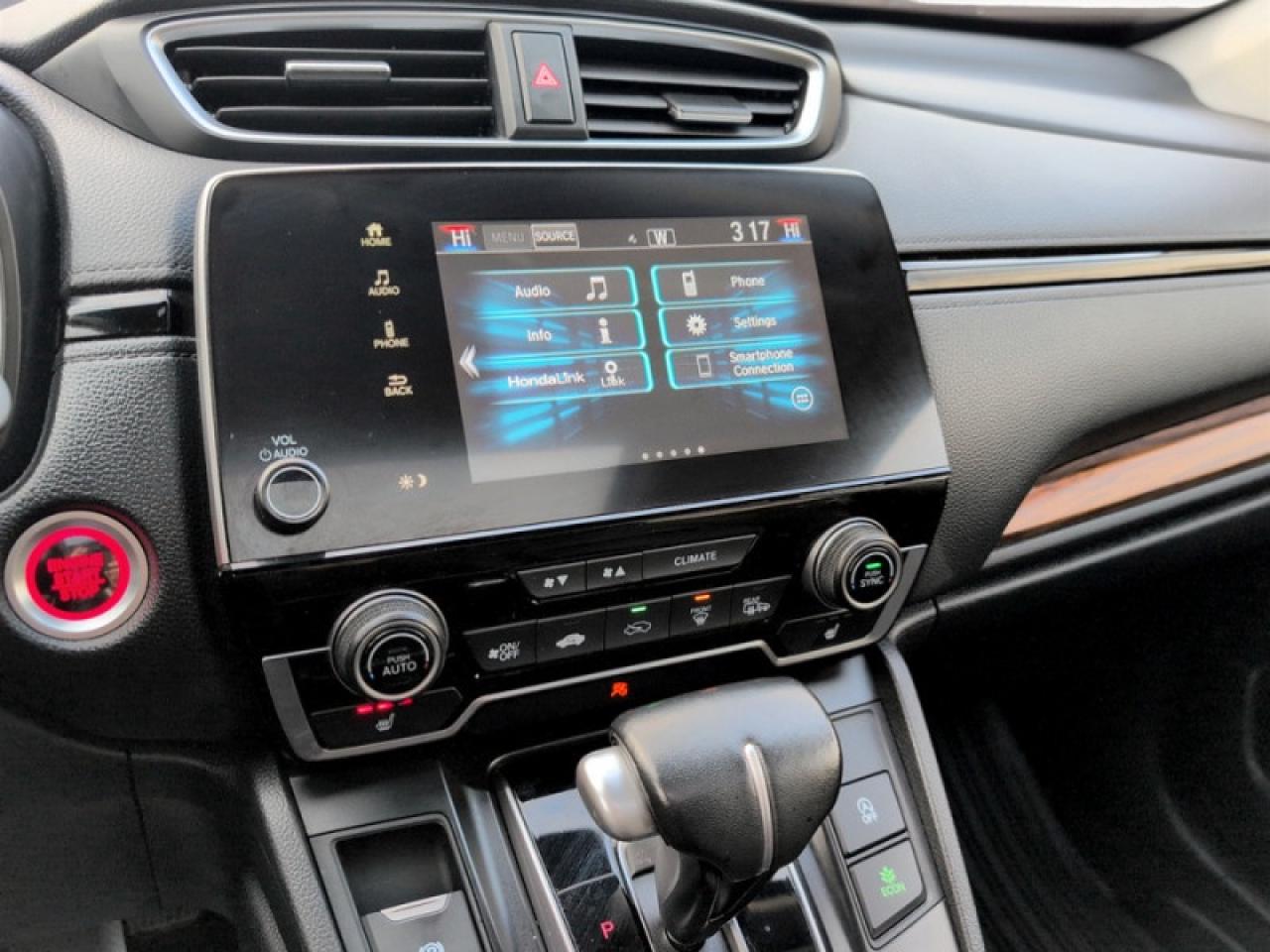 Our CR-V's trim level is EX-L. Ramping up the luxury, this EX-L trim has heated leather seats in front and back, a heated steering wheels, memory settings for the drivers seat, an auto dimming rear view mirror, a power tailgate with programmable height, woodgrain interior, a moonroof, automatic high and low beam headlights, dual-zone automatic climate control, remote start, heated seats, LED daytime running lights, heated power mirrors, and aluminum wheels. Keeping you connected is an infotainment system that includes a 7 inch touchscreen with HondaLink, HomeLink home remote system, HandsFreeLink bilingual Bluetooth, Apple CarPlay, Android Auto, SiriusXM, a rear view camera, and a 6 speaker sound system. Helping you drive and keeping you safe is automatic collision mitigation braking, forward collision warning, lane departure warning, road departure mitigation, and lane keep assist, and a blind spot display.