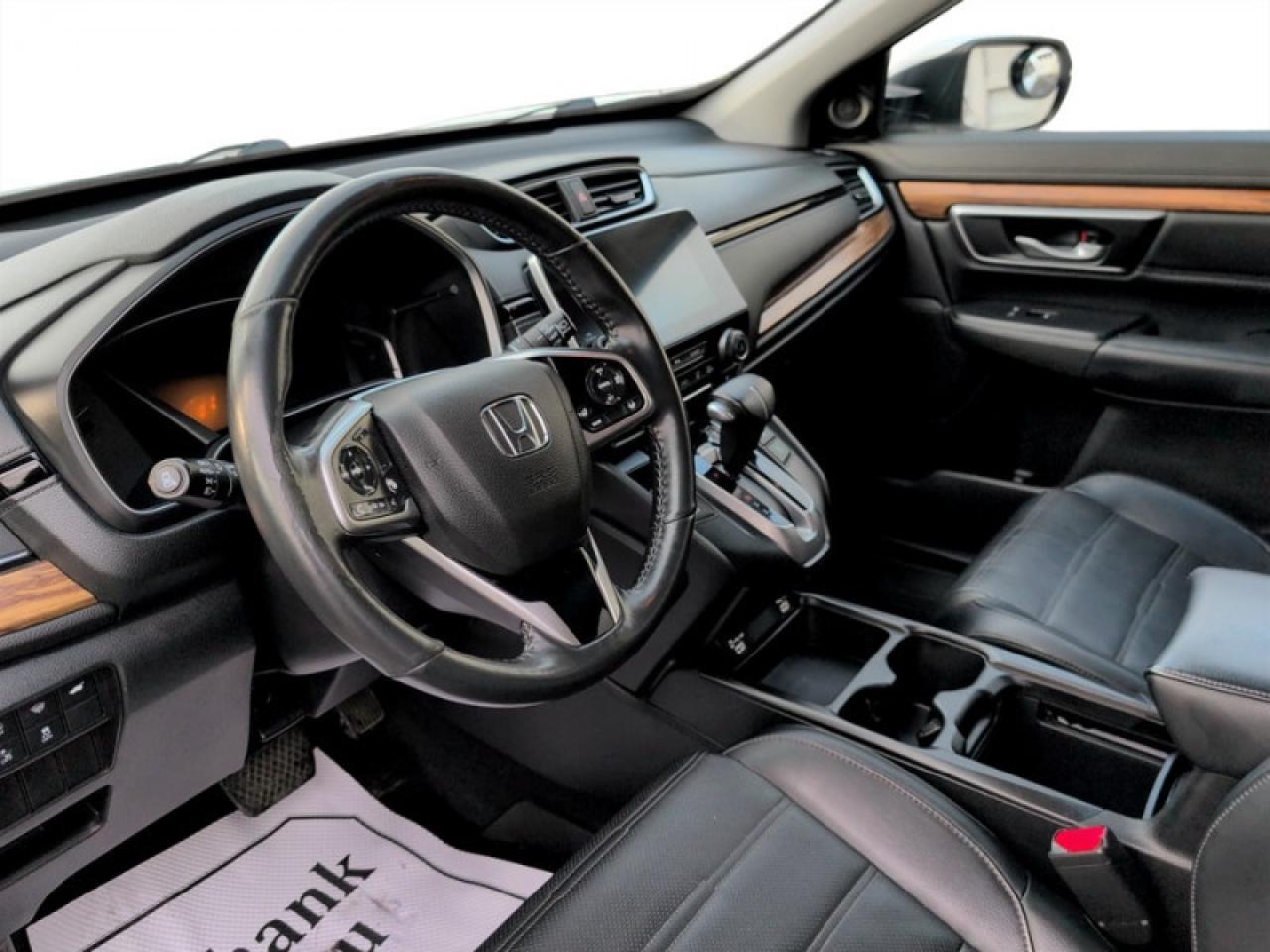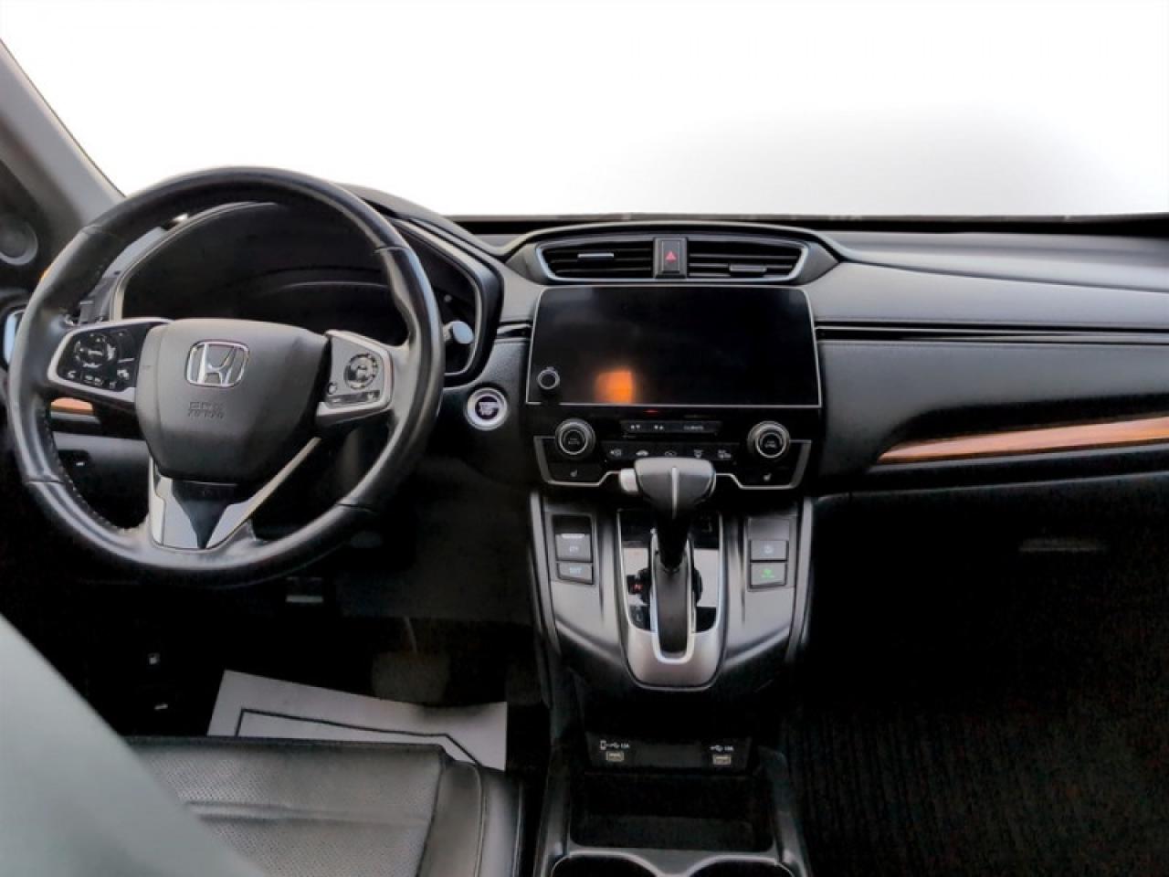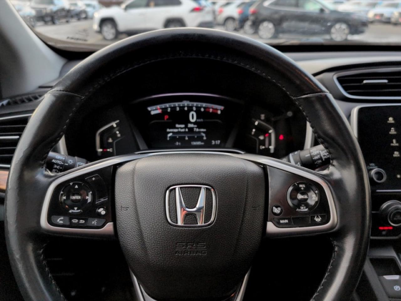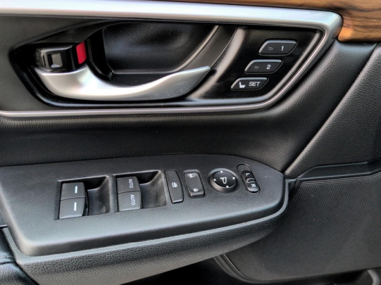 Our CR-V's trim level is EX-L. Ramping up the luxury, this EX-L trim has heated leather seats in front and back, a heated steering wheels, memory settings for the drivers seat, an auto dimming rear view mirror, a power tailgate with programmable height, woodgrain interior, a moonroof, automatic high and low beam headlights, dual-zone automatic climate control, remote start, heated seats, LED daytime running lights, heated power mirrors, and aluminum wheels. Keeping you connected is an infotainment system that includes a 7 inch touchscreen with HondaLink, HomeLink home remote system, HandsFreeLink bilingual Bluetooth, Apple CarPlay, Android Auto, SiriusXM, a rear view camera, and a 6 speaker sound system. Helping you drive and keeping you safe is automatic collision mitigation braking, forward collision warning, lane departure warning, road departure mitigation, and lane keep assist, and a blind spot display.
