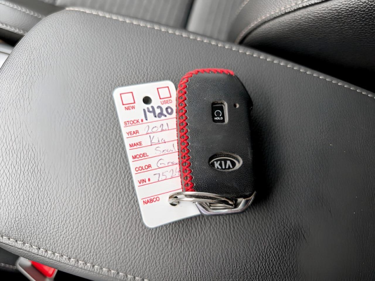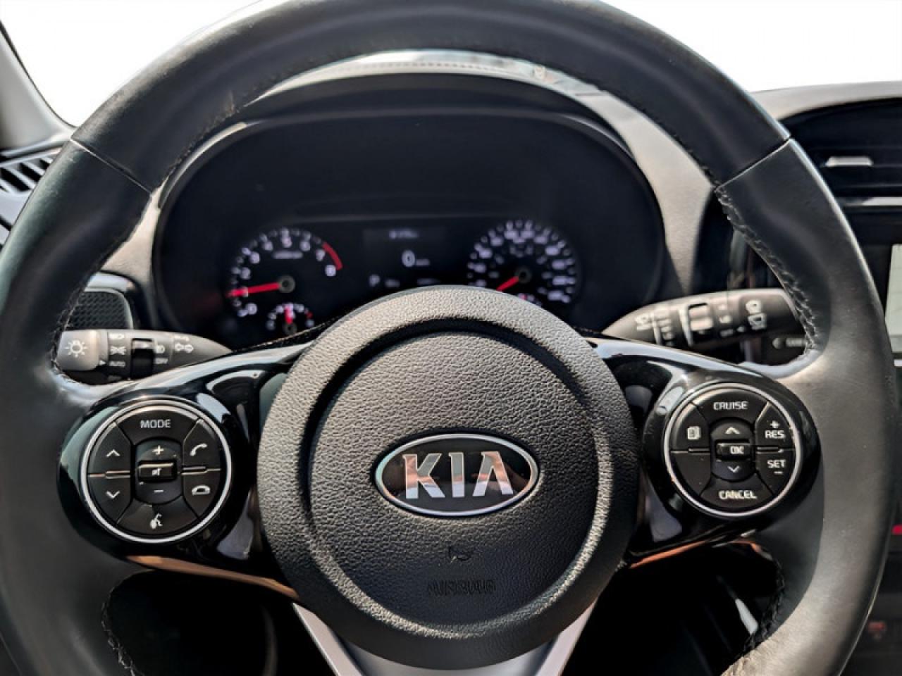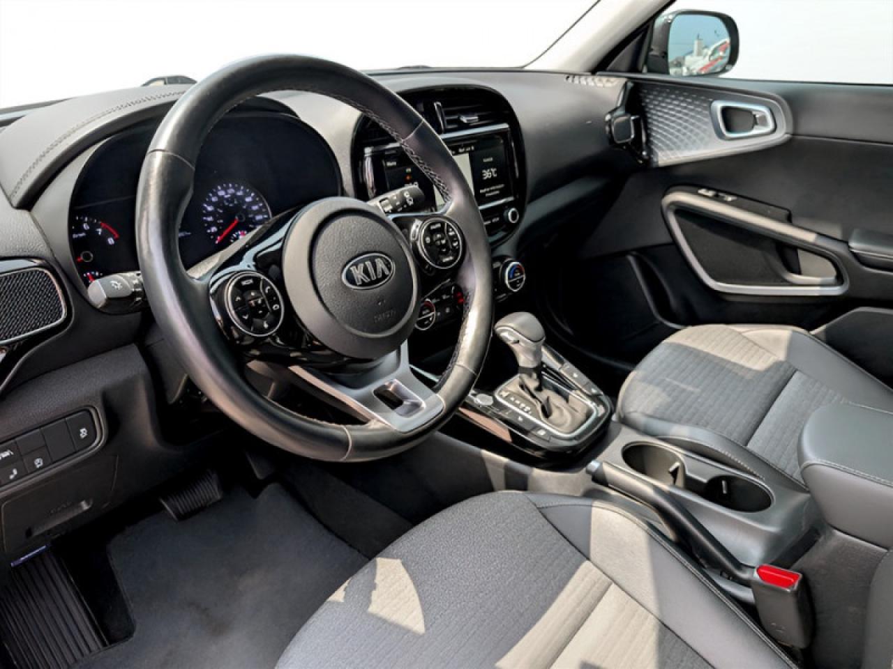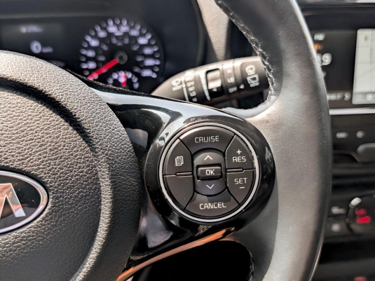 Our Soul's trim level is EX Premium. This EX Premium comes with all of the top level feature like a sunroof, cloth & synthetic leather seats, wireless charging, a heated leather steering wheel, heated front seats, navigation, dual zone climate control and collision avoidance technology. Exterior style is enhanced with a gloss black grille with chrome accents, LED headlights and fog lights, larger aluminum wheels, heated side mirrors with turn signals and a rearview camera. Technology in this awesome SUV is taken to the next level with lane keep assist, blind spot monitoring, forward collision-avoidance assist, rear cross traffic alert and also comes with a proximity key, Android Auto, Apple CarPlay and a 10 inch touchscreen display.