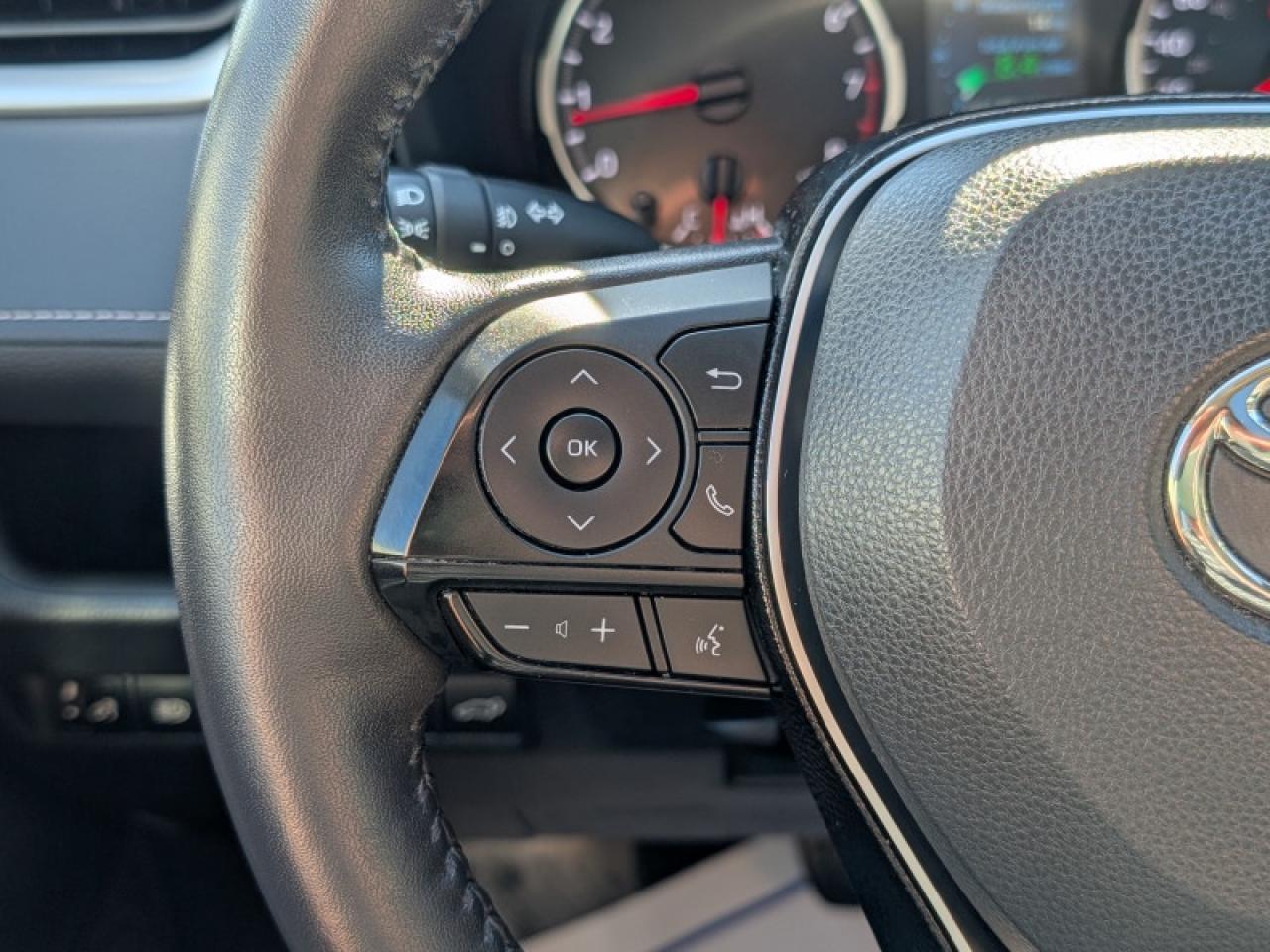 Our RAV4's trim level is XLE. Stepping up to this luxurious RAV4 XLE is a great choice as it comes with premium features such as a power sunroof, dual zone climate control, Toyota's Smart Key system with push button start, a 7 inch touchscreen with Entune Audio 3.0, Apple CarPlay, Android Auto, extra USB and aux inputs, heated seats with more premium seat material, a leather heated steering wheel and stylish aluminum wheels. Additional features includes a power drivers seat, LED headlights and fog lights, heated power mirrors, Toyota Safety Sense 2.0, dynamic radar cruise control, automatic highbeam assist, blind spot monitoring with rear cross traffic alert, and lane keep assist with lane departure warning plus so much more.