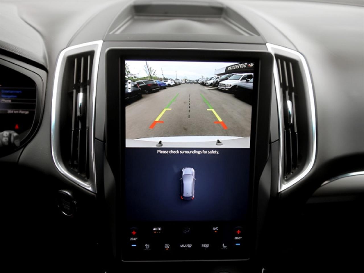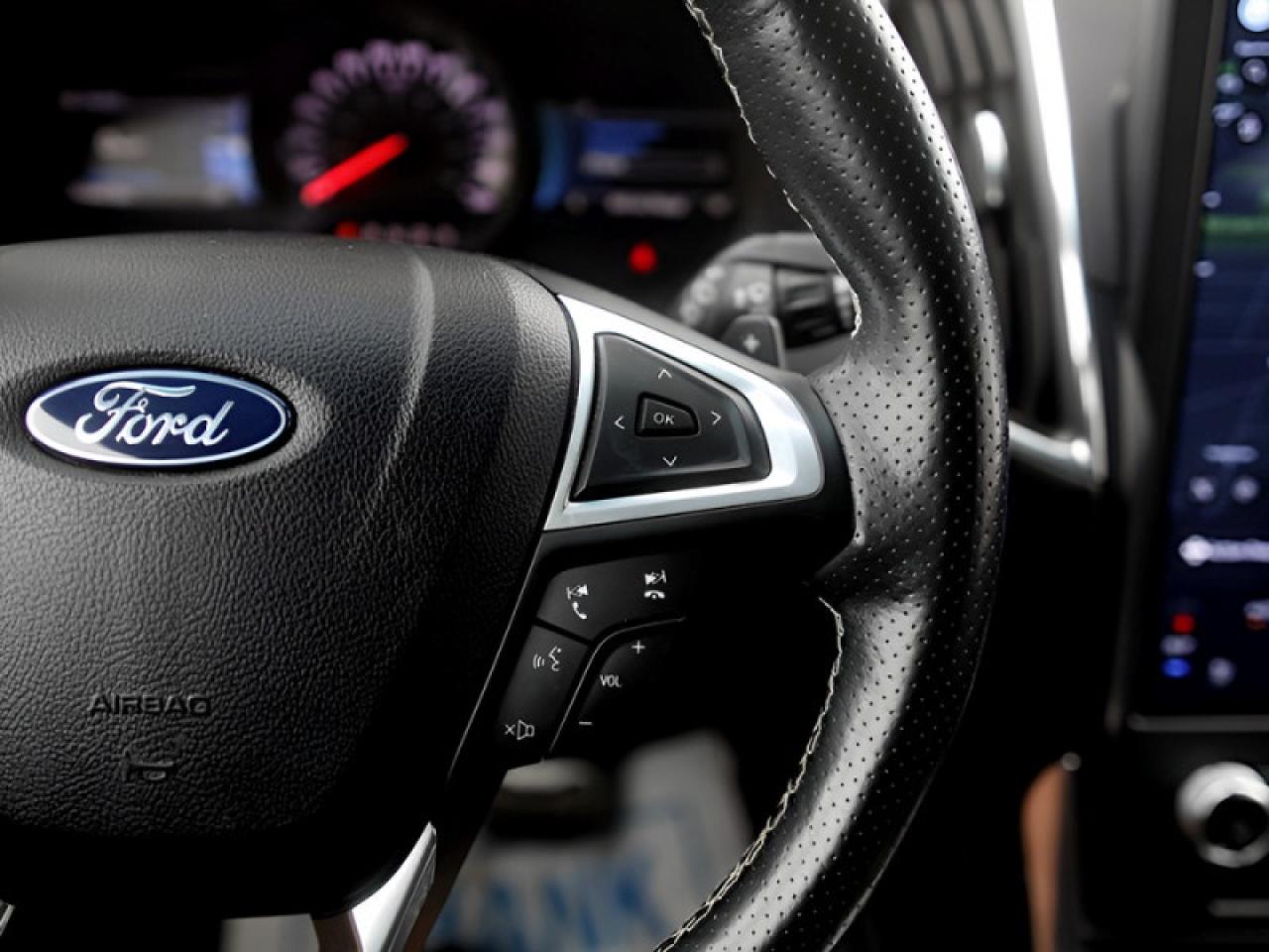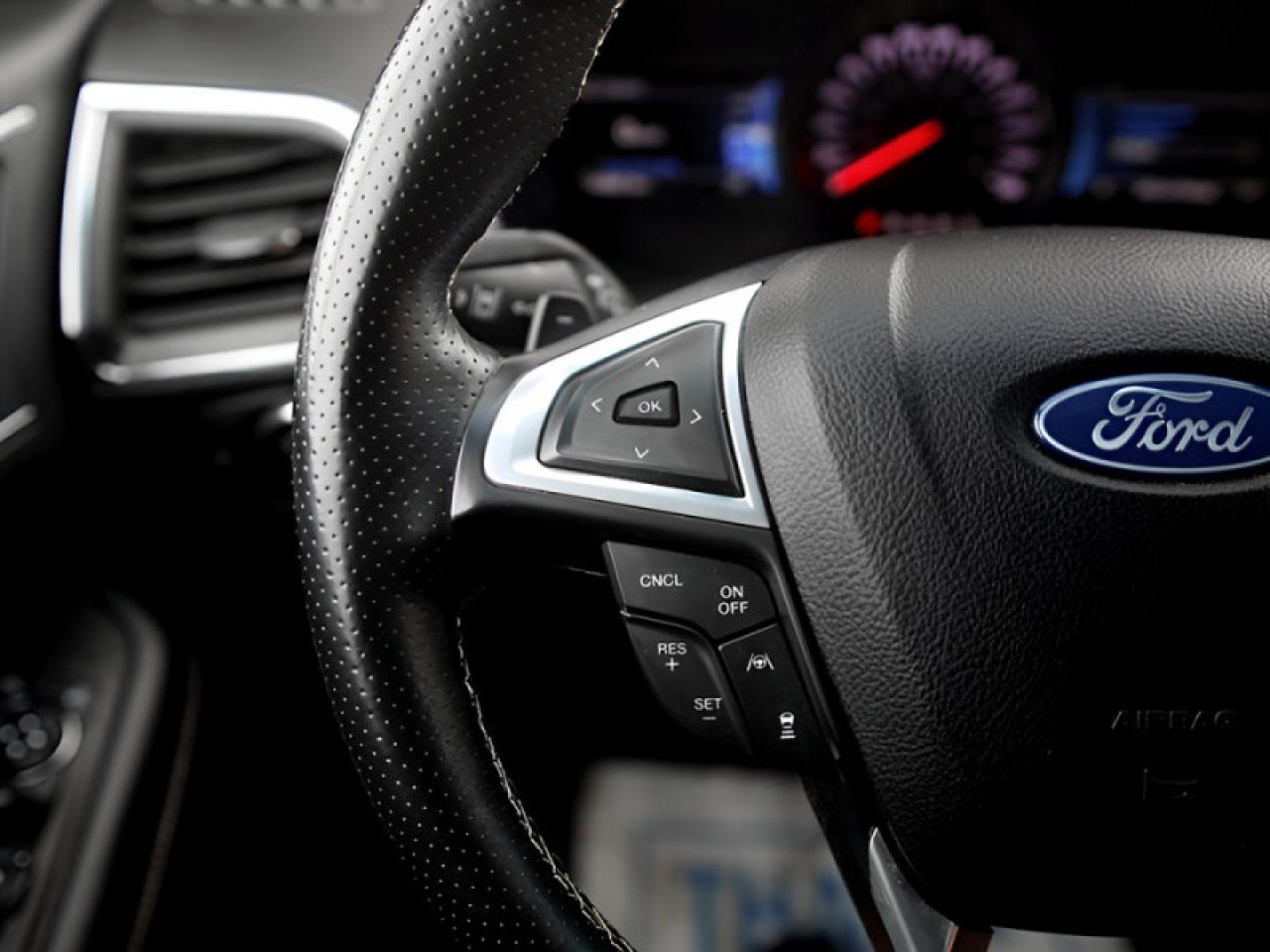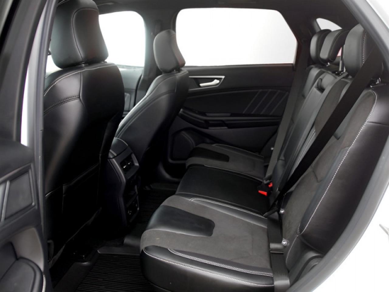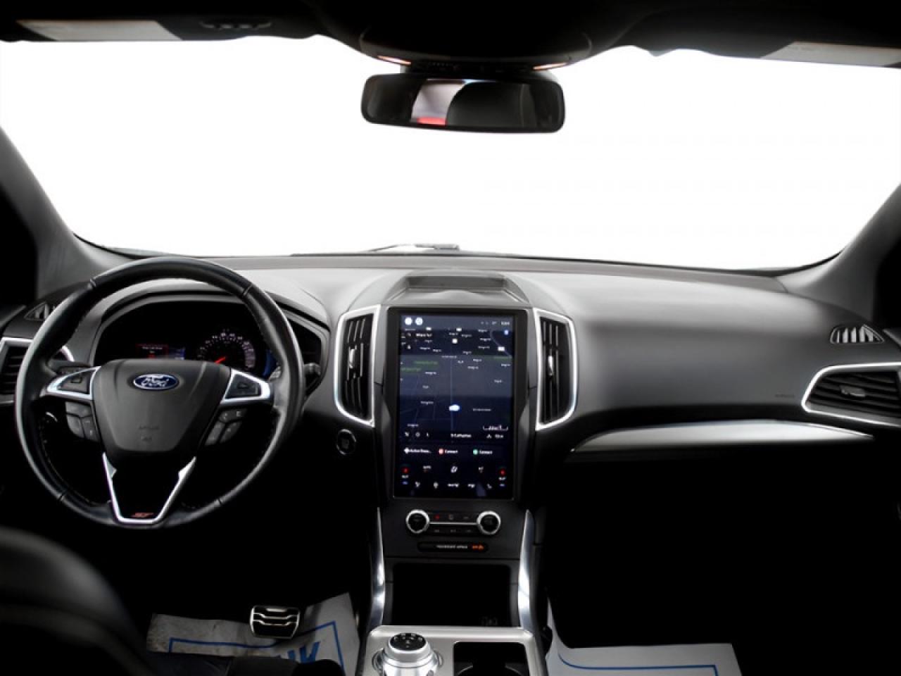 Our Edge's trim level is ST. Stepping up to this Ford Edge ST is an excellent choice as it comes fully loaded with an impressive list of aggressive features including unique aluminum wheels, exclusive exterior styling and a black front grille, a Bang & Olufsen 12 speaker premium sound system, power rear liftgate, heated leather seats with Miko suede inserts, FordPass Connect with a 4G LTE hotspot, an 12 inch touchscreen featuring SYNC 4, wireless Apple CarPlay and Android Auto, a leather wrapped steering wheel and dual zone automatic climate control. For added safety and convenience, you will also get Ford Co-Pilot360 with blind spot assist, lane keep assist, automatic emergency braking, lane departure warning, a proximity key for push button start, front fog lights, a remote engine start and a rear view camera with rear parking sensors.