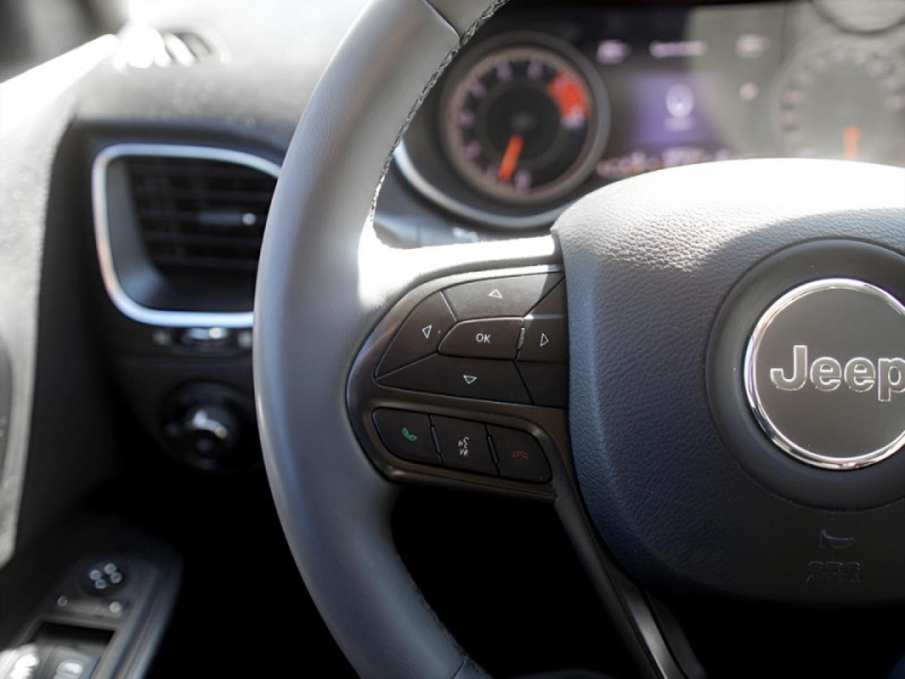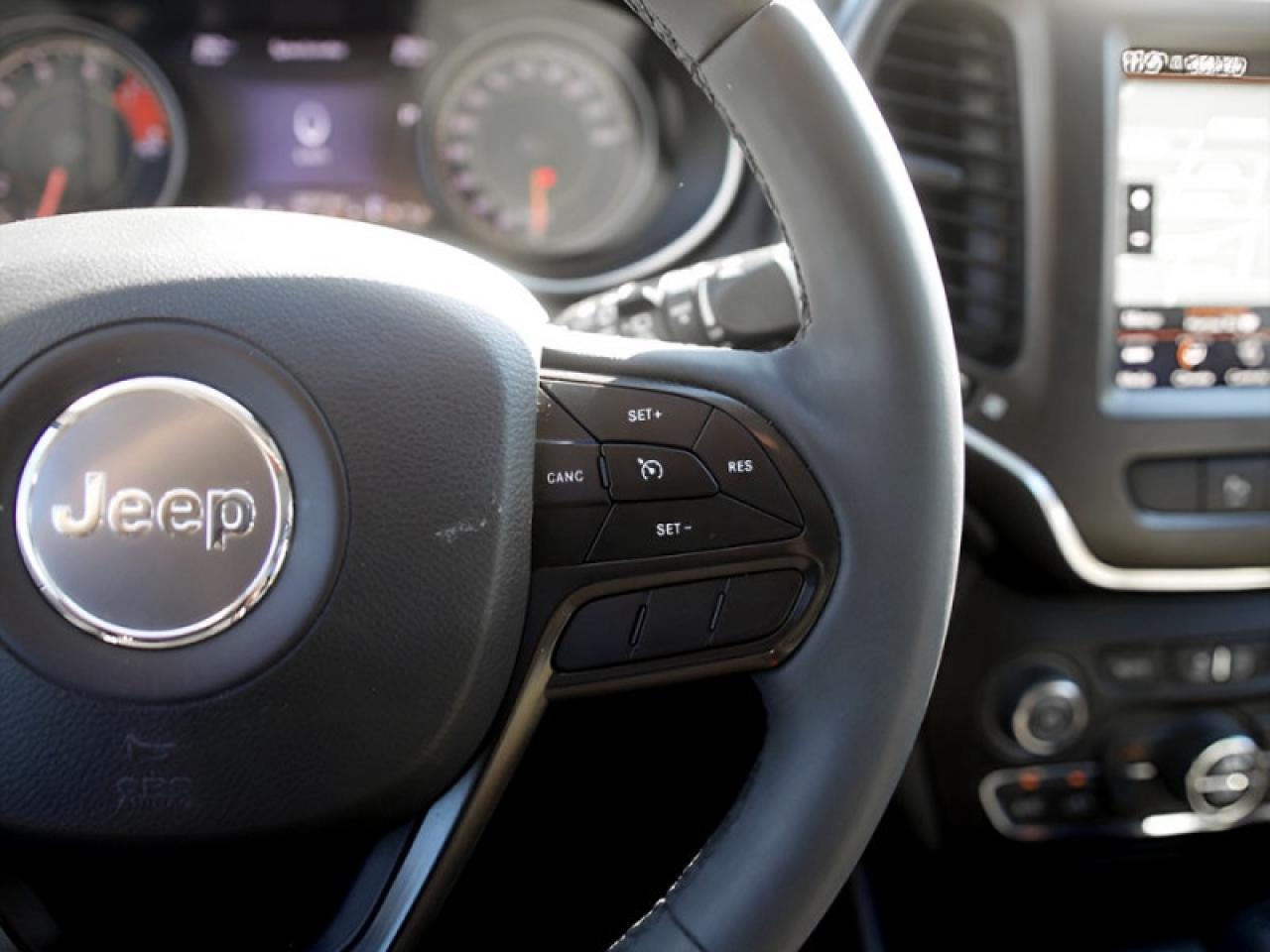 Our Cherokee's trim level is Trailhawk. This Cherokee Trailhawk edition adds skid plates, tow hooks, and off road suspension so you can build new roads no matter the conditions. This rugged and ready Cherokee offers heated front seats, a power liftgate, heated steering wheel, proximity keys, blind spot detection, parking sensors, remote start, and LED headlights for comfort and convenience. Stay connected on the commute or the trail with a 4G Wi-Fi hotspot, Apple CarPlay, Android Auto, and wireless streaming Audio.