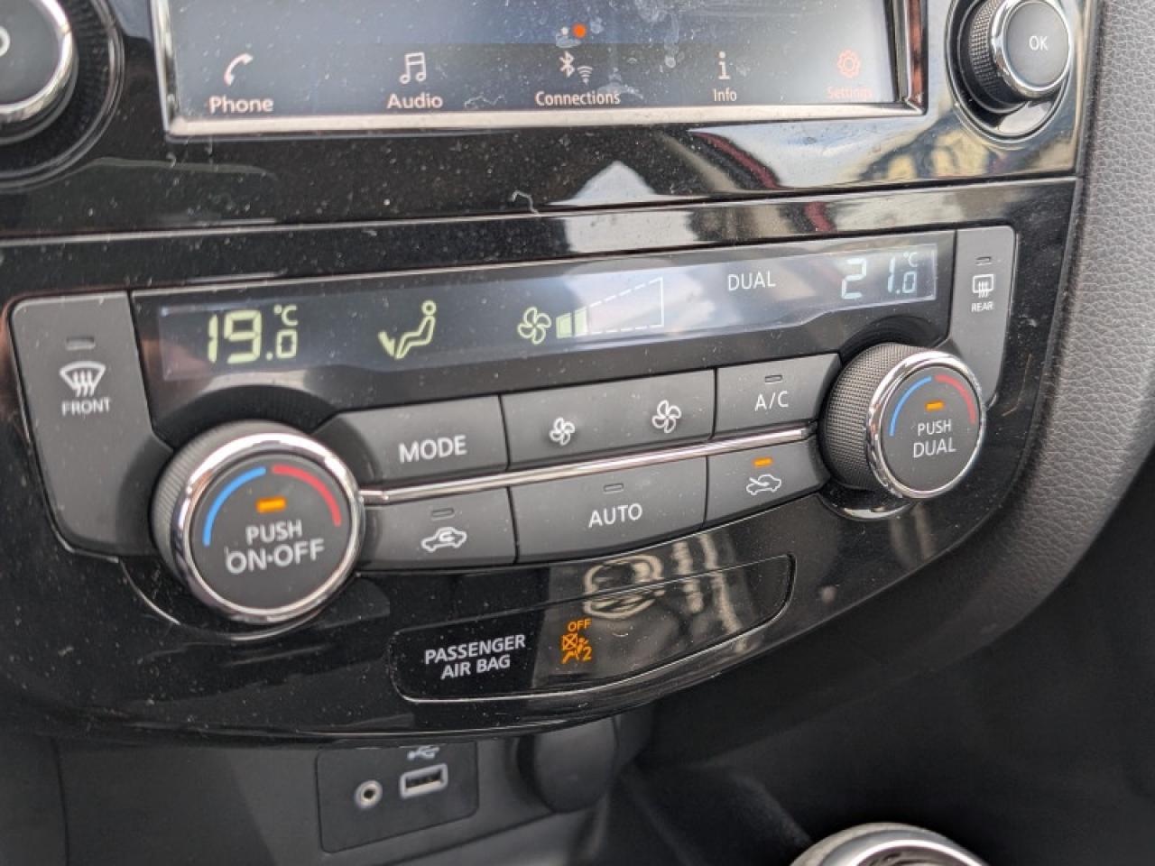 Our Qashqai's trim level is SV AWD. This upgraded Nissan Qashqai SV sweetens the deal with an express opening glass sunroof with slide and tilt functionality and a power shade, halogen headlamps with automatic high beams, a sporty heated leather steering wheel, dual-zone climate control, and adaptive cruise control with steering, in addition to blind-spot monitoring, lane-keep assist, and front emergency braking. Additional features include heated front seats, proximity keyless entry with push button start, piano-black interior inserts, a rear-view camera, and a 6-speaker audio system, a 7-inch infotainment screen bundled with Apple CarPlay, Android Auto, and SiriusXM satellite radio.