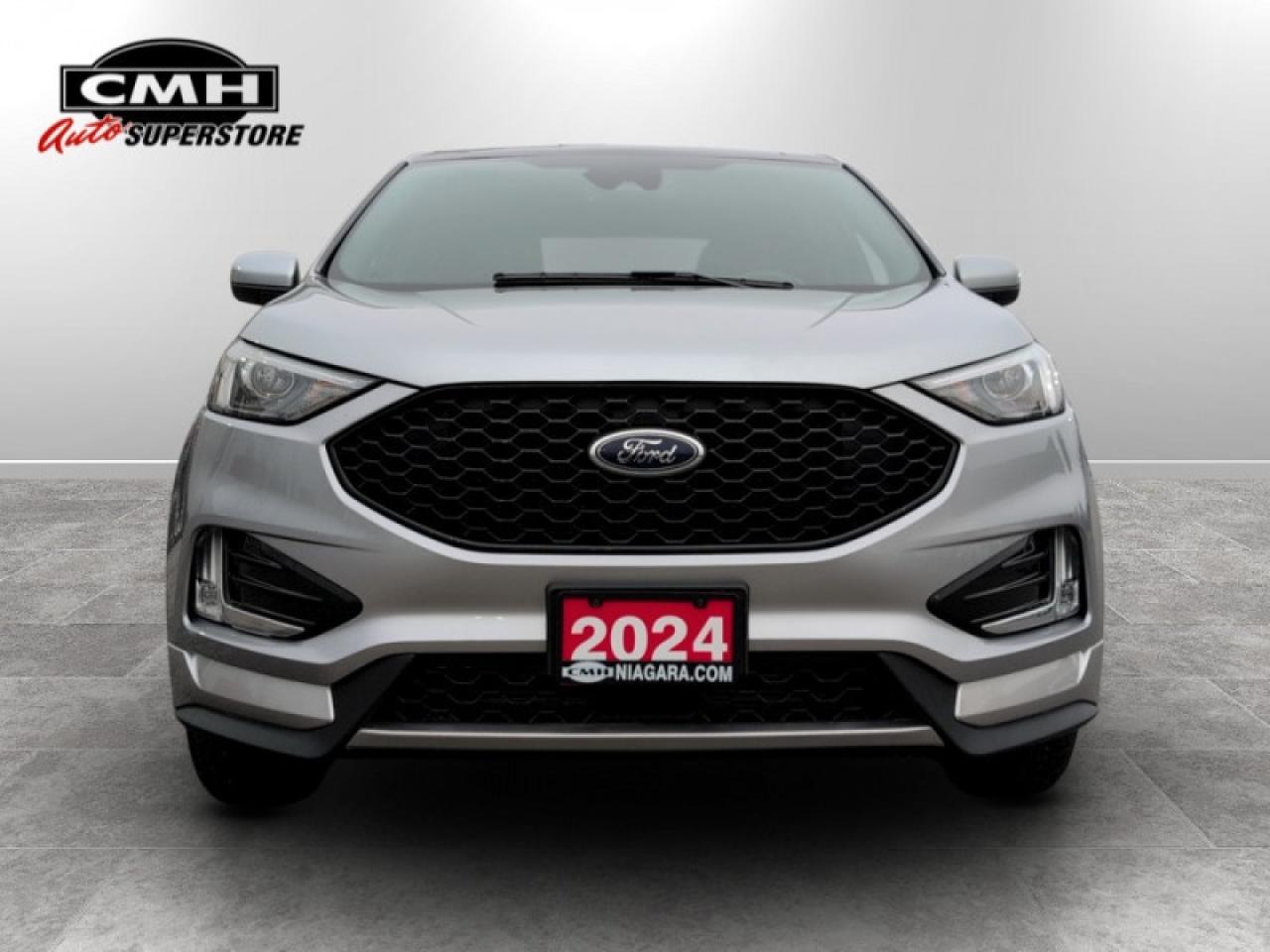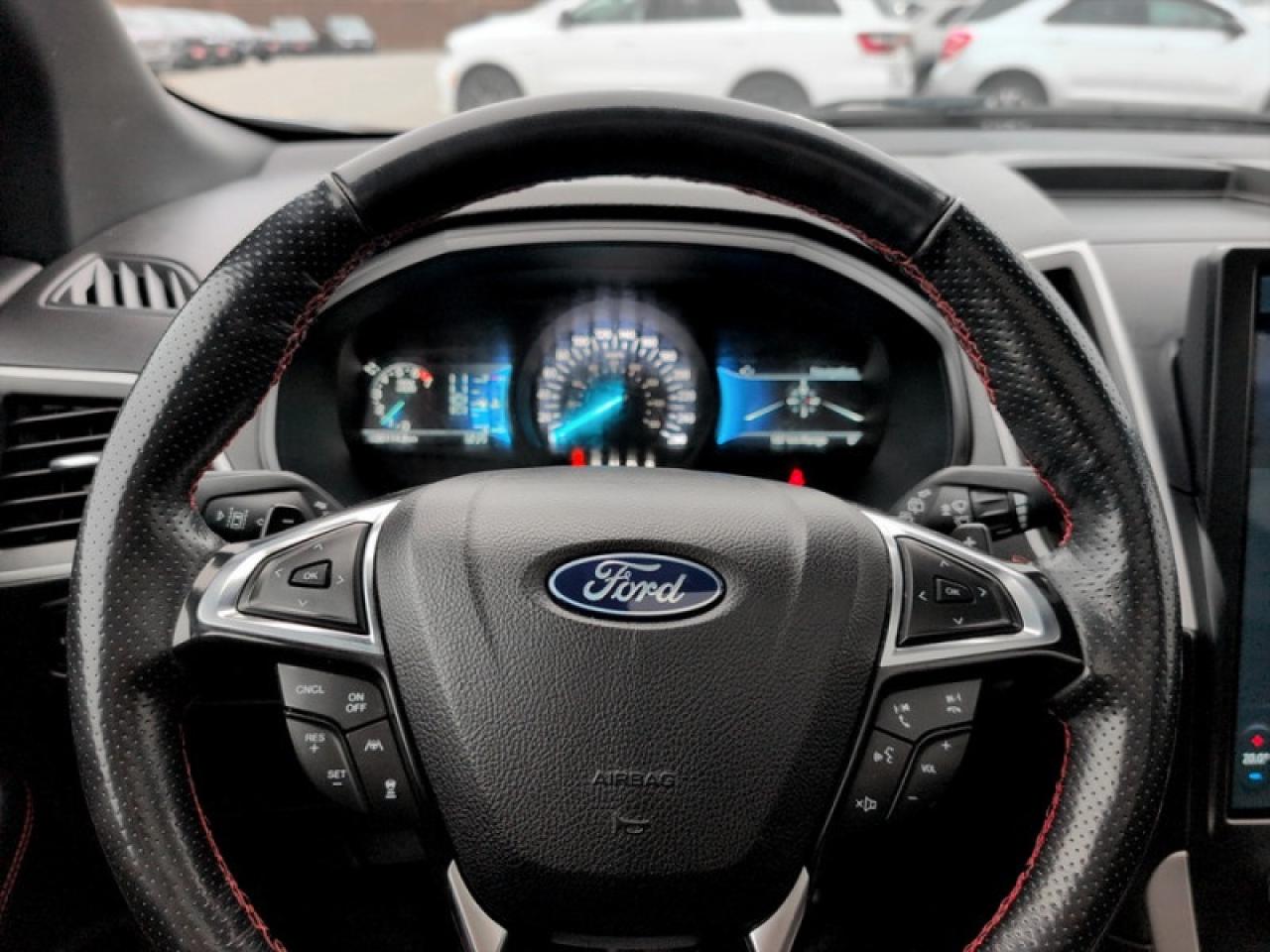 Our Edge's trim level is ST Line. Taking things to the edge with this ST Line trim, featuring unique gloss-black wheels, a blacked-out grille with trim-specific exterior styling, aggressive exhaust tips, front fog lamps, a numeric keypad for extra security, and supportive ActiveX heated front bucket seats, with power-adjustment and lumbar support. This trim also features a power liftgate for rear cargo access, a key fob with remote engine start and rear parking sensors, a 12-inch capacitive infotainment screen bundled with wireless Apple CarPlay and Android Auto, SiriusXM satellite radio, a 6-speaker audio setup, and 4G mobile hotspot internet connectivity. You and yours are assured of optimum road safety, with blind spot detection, rear cross traffic alert, pre-collision assist with automatic emergency braking, lane keeping assist, lane departure warning, forward collision alert, driver monitoring alert, and a rearview camera with an inbuilt washer. Also standard include proximity keyless entry, dual-zone climate control, 60-40 split front folding rear seats, LED headlights with automatic high beams, and even more.